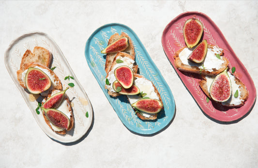 Asymmetric wild grasses ceramic serving centrepiece platter